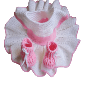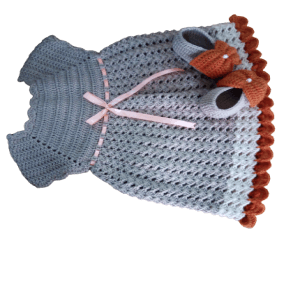 Unique crochet birthday gift set/ Matching dress and ribbon decorated booties for baby girl