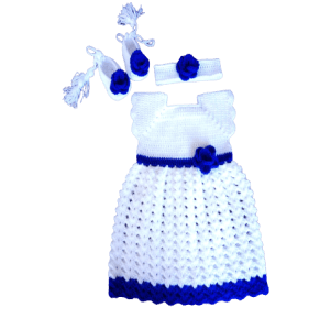 Cute royal blue crochet baby dress, matching booties with rose flowers|| 3 pieces baby girl crochet set