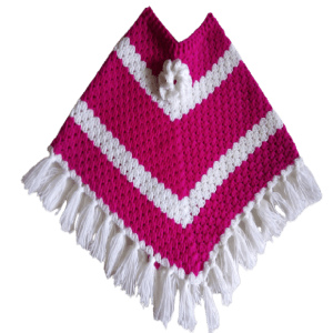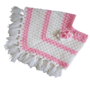 Cute handmade kids poncho/ pink and white crochet baby poncho with tassels